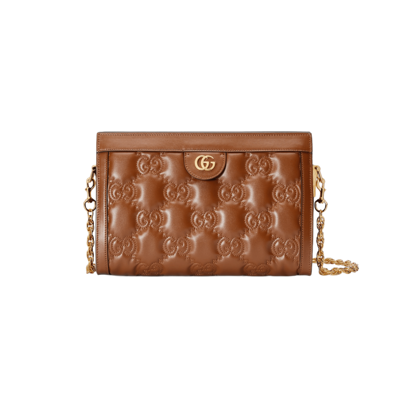 BORSA GG MATELASSÉ MISURA PICCOLA IN PELLE MARRONE CHIARO