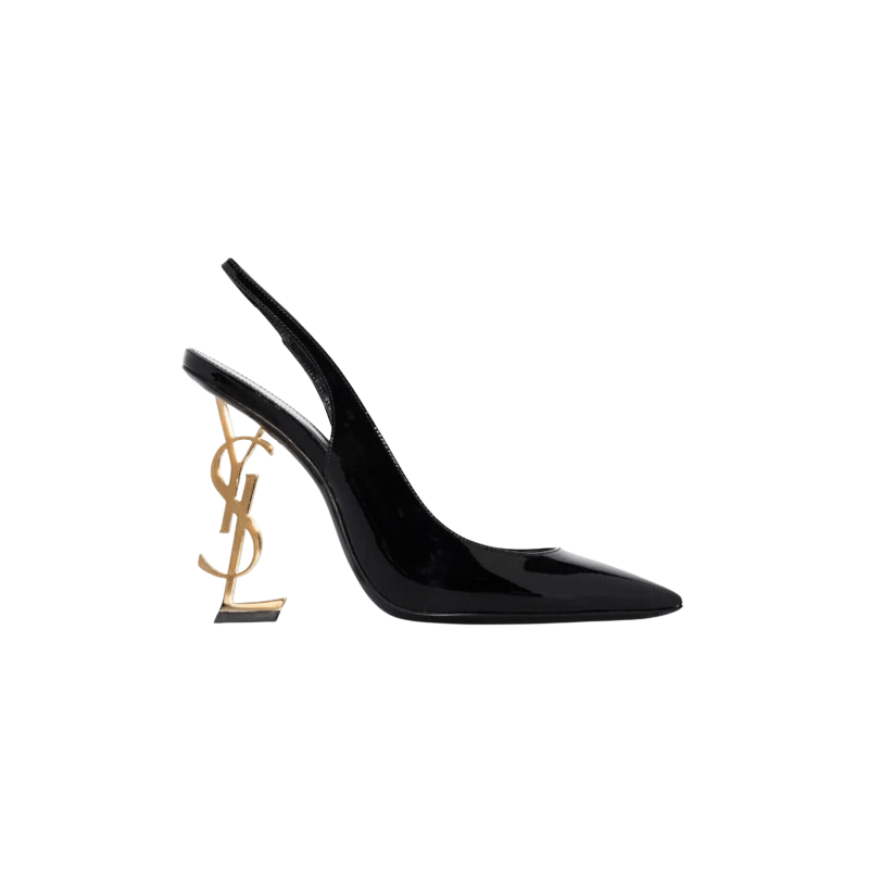 DECOLLETE OPYUM APERTE SUL RETRO NERO VERNICE TACCO DORATO
