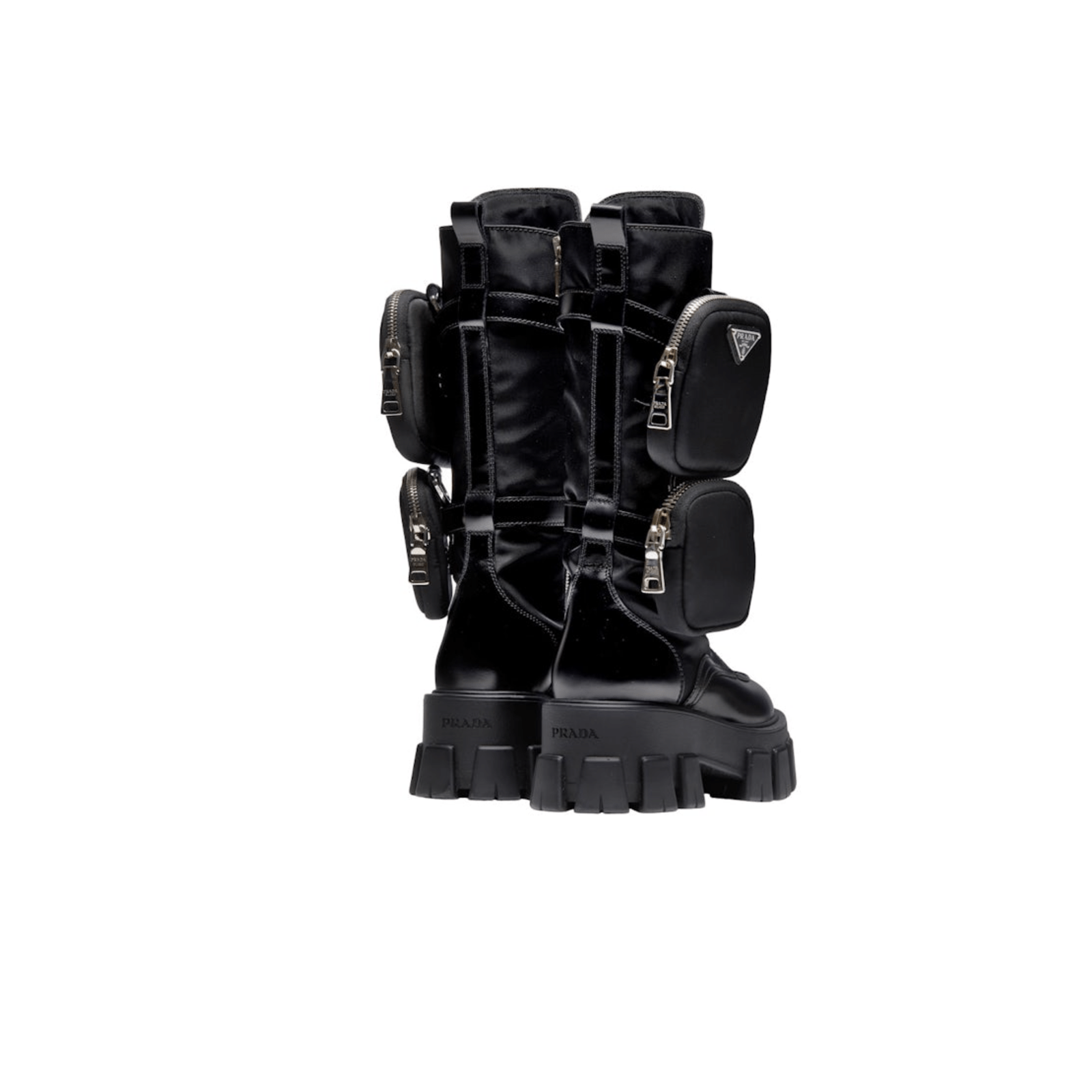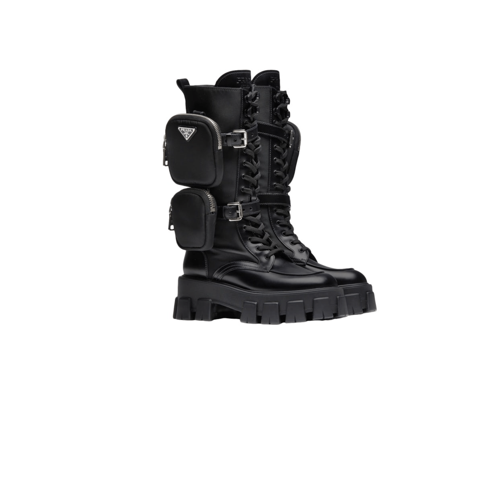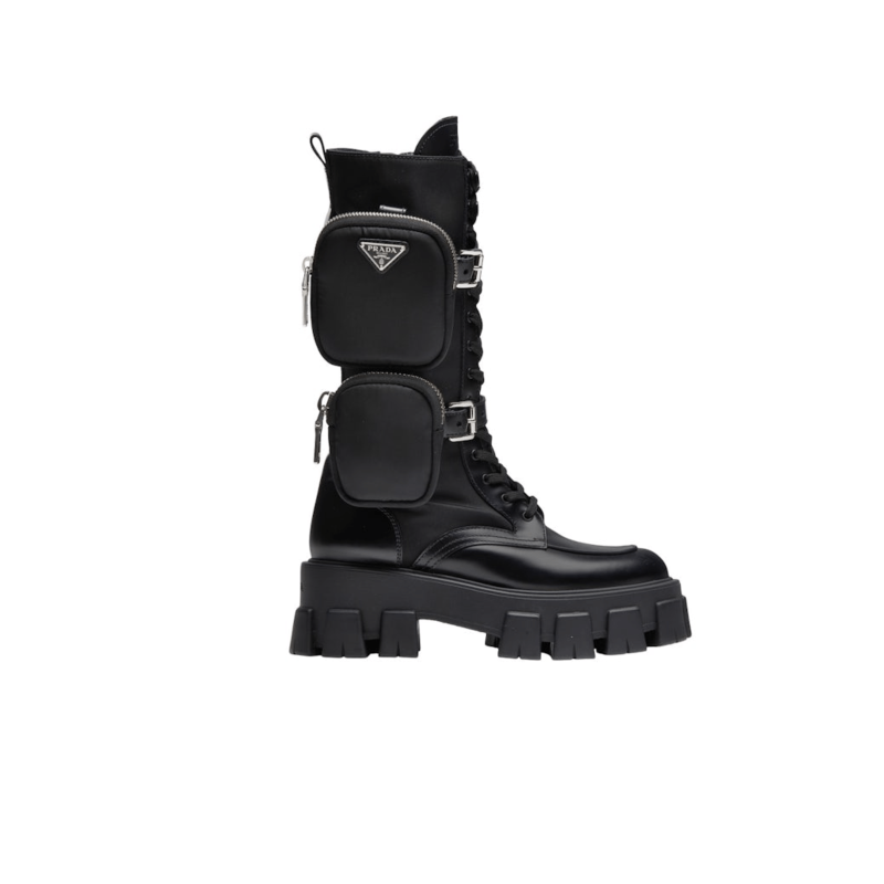 STIVALI PRADA ALTI MONOLITH IN PELLE NERA CON MARSUPIO